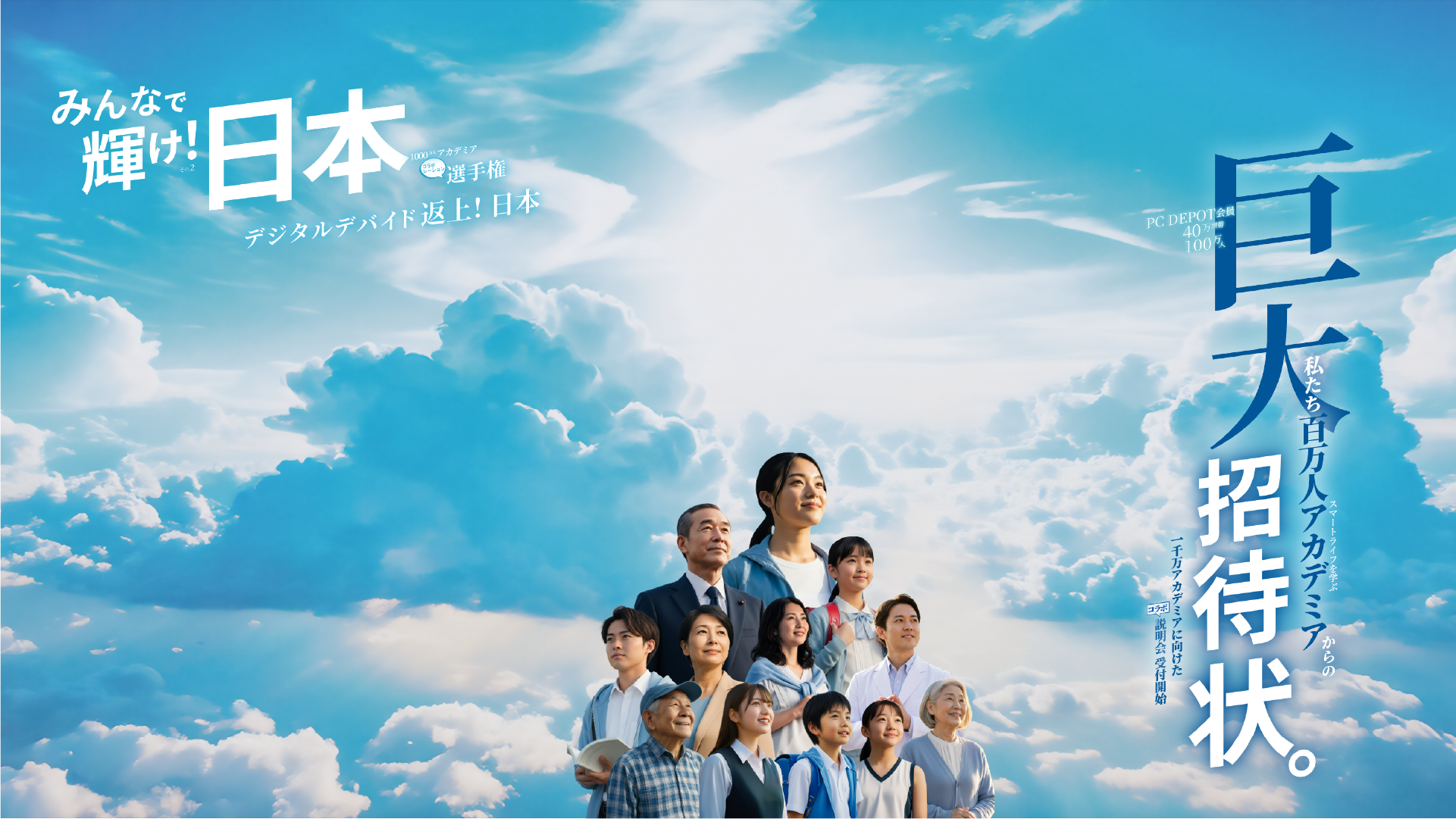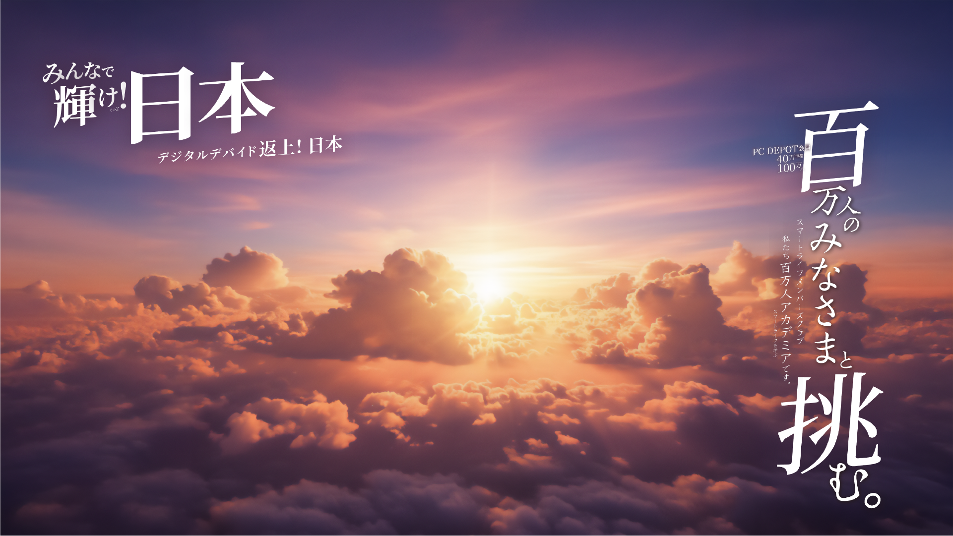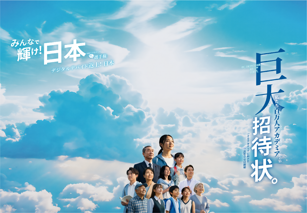 当クラブは、1,000万人の方が「自ら学べる」「困る前に聞ける」「困ったら相談できる」、そんな“みんながいるから、みんな大丈夫”と言える「共創アカデミア」が理想と考えています。誰もが「私はデジタルが苦手で、わからないことだらけ」と口に出すことができ、共に課題に取り組み、「ああ〜、わかったよ! 今度は早めに聞くね!」「また聞いてください」といった温かく素敵な会話が広がる社会を、このアカデミアで実現したいと存じます。“みんなで輝け!日本”を目指し、“みんながいるから、みんな大丈夫”な日本へ。当クラブは、その先陣となる100万人アカデミアとして、社会に貢献してまいります。会員の皆さま、今後とも変わらぬお付き合いをよろしくお願いいたします。